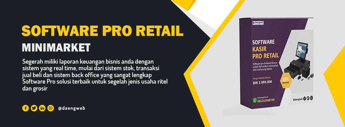 Kunjungi project terbaru yang kami kerjakan di Instagram dan Facebook untuk web database seperti Perusahaan, Universitas, Toko online, serta informasi update seputar Software Kasir Pro V.6.1 untuk Retail Minimarket, Apotek, Toko Bangunan, Bengkel, Toko Elektronik dan lainya.